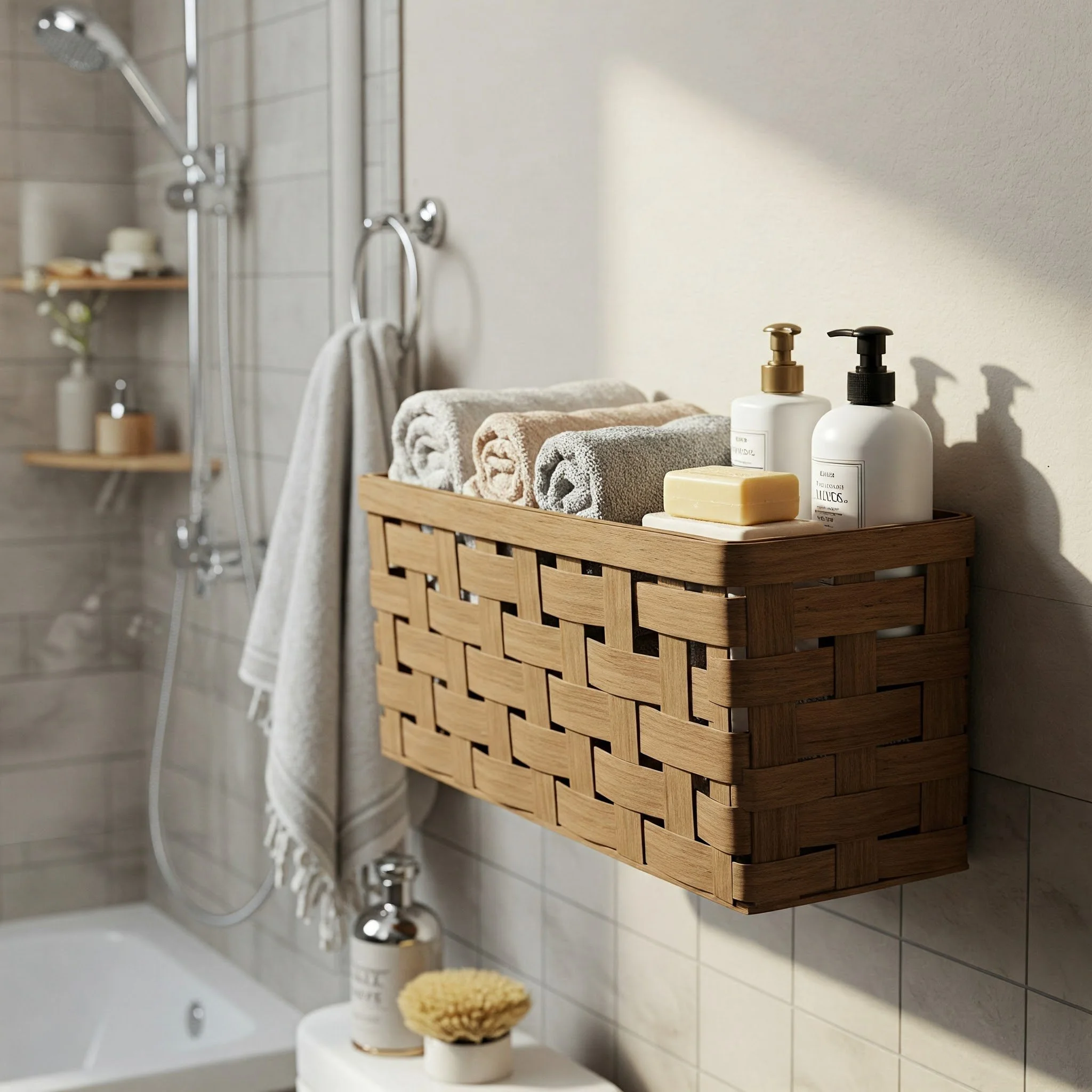 Decorative wall racks offer a stylish way to store and display your bathroom accessories. These racks come in various designs—from minimalist metal frameworks to intricately carved wooden pieces—and can be used to hold everything from robes and towels to bath products and decor. Imagine a beautifully designed rack that not only serves a practical purpose but also acts as a piece of art on your wall, adding character and charm to your bathroom. Decorative wall racks help you organize small items while enhancing the overall aesthetic, ensuring that every detail contributes to a cohesive look. They are a perfect blend of function and style, allowing you to showcase your personal taste while keeping your essentials neatly arranged. Embracing decorative racks transforms your bathroom into a gallery of curated organization, where every accessory finds its place in a beautifully orchestrated display.