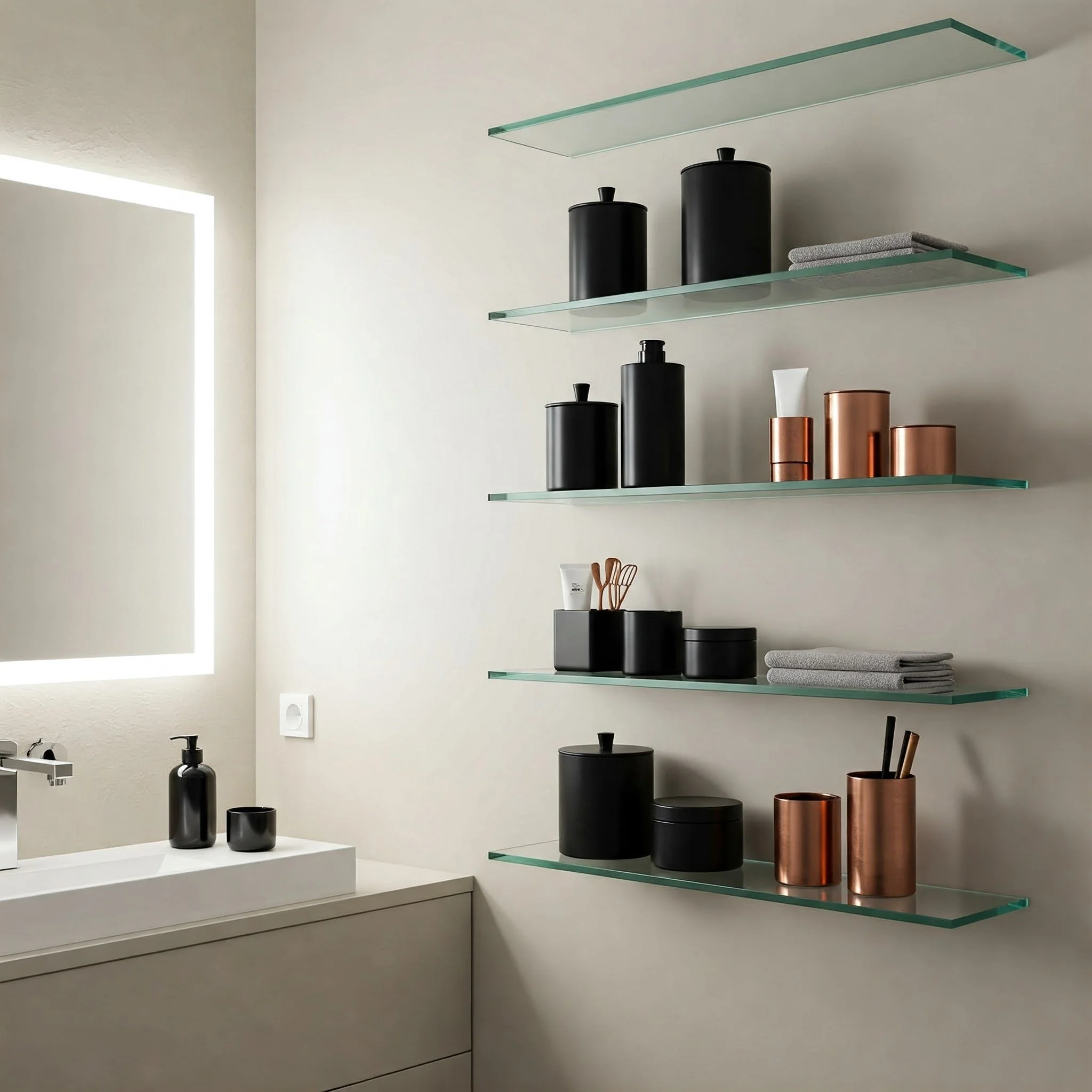 Glass shelves bring a touch of elegance and modernity to bathroom wall storage. Their transparent design creates an illusion of spaciousness, making the room appear larger and more open. Imagine your bathroom adorned with clear, tempered glass shelves that hold neatly arranged toiletries and decorative accents. These shelves not only offer practical storage but also serve as a design statement, reflecting light and adding a sense of sophistication. Their clean lines and minimalist aesthetic work perfectly in contemporary bathrooms, allowing you to display your favorite items without overwhelming the space. Glass shelves are also easy to clean and maintain, making them a practical choice for busy households. Embracing this option means you’re investing in both functionality and style—transforming your bathroom into a bright, organized sanctuary where every element is carefully curated for maximum impact.
