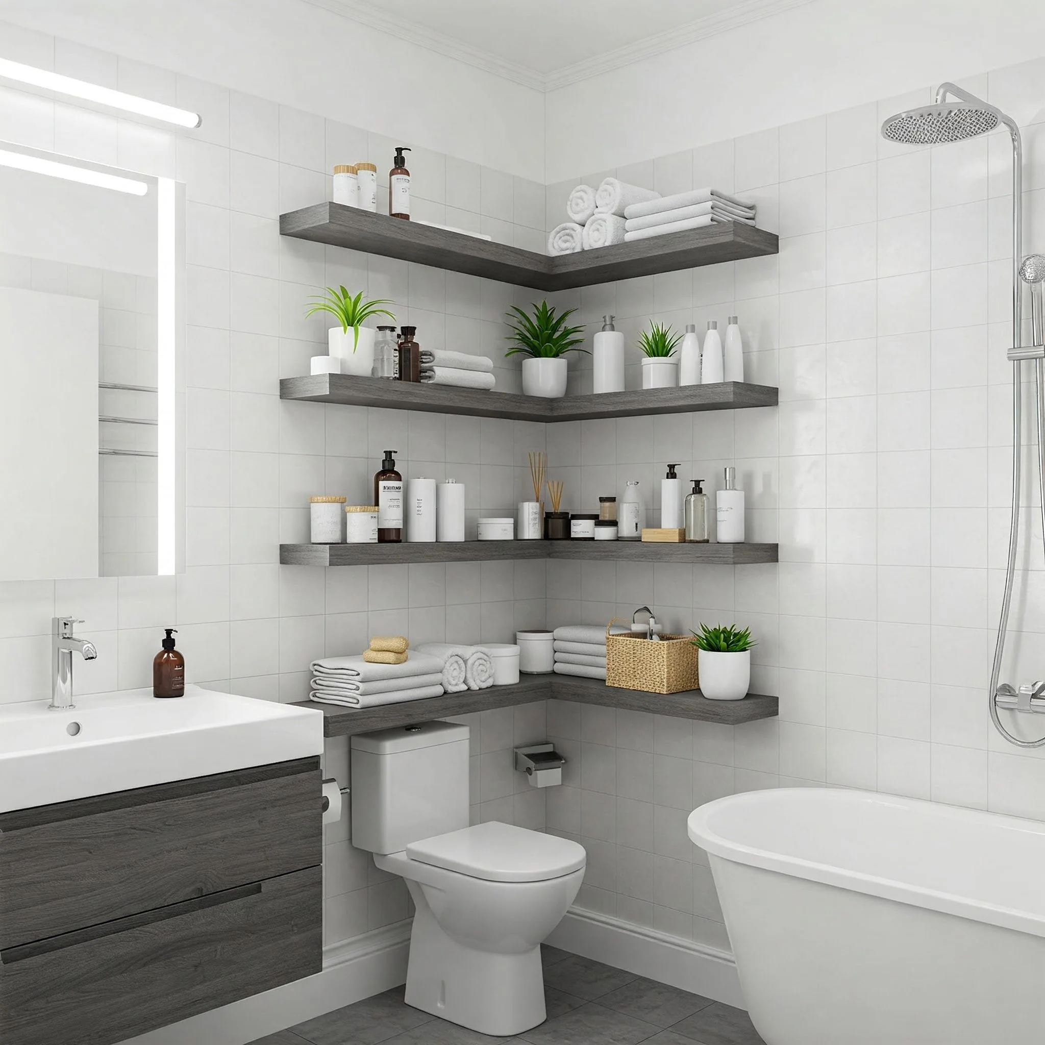 Corner shelving is an excellent strategy to reclaim the often-forgotten areas in your bathroom. Corners can become hidden storage gems when fitted with carefully designed shelves that hold toiletries, decor, or even small plants. Imagine transforming an awkward corner into a stylish display of your favorite bath essentials—a perfect blend of practicality and design. These shelves make efficient use of space, ensuring that nothing goes to waste in your compact bathroom. By installing corner shelves, you not only enhance storage capacity but also add a dynamic element to your decor. It’s like discovering a secret compartment that brightens up the room while keeping your essentials organized and accessible. With a little creativity and smart placement, corner shelving turns previously wasted spaces into functional, decorative storage solutions that contribute to an overall sense of order.