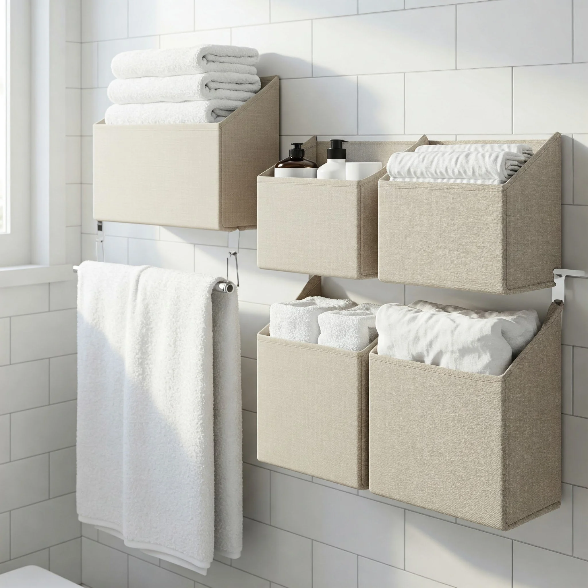 Hanging organizers offer an efficient way to keep towels and linens neatly stored and easily accessible in your bathroom. These organizers, which can be attached to the wall or even the back of a door, provide designated spots for each item. Imagine a chic organizer where every towel, washcloth, and bath mat has its own compartment, reducing clutter and simplifying your daily routine. This solution is particularly beneficial in bathrooms with limited storage space, as it keeps bulky items off the floor and within reach. The design of hanging organizers can be both functional and decorative, enhancing your bathroom’s overall look while serving as a practical storage tool. With these organizers, you create an orderly system that not only tidies up your space but also adds a touch of style—like a well-organized closet that makes every morning a little brighter and every bath a more enjoyable experience.