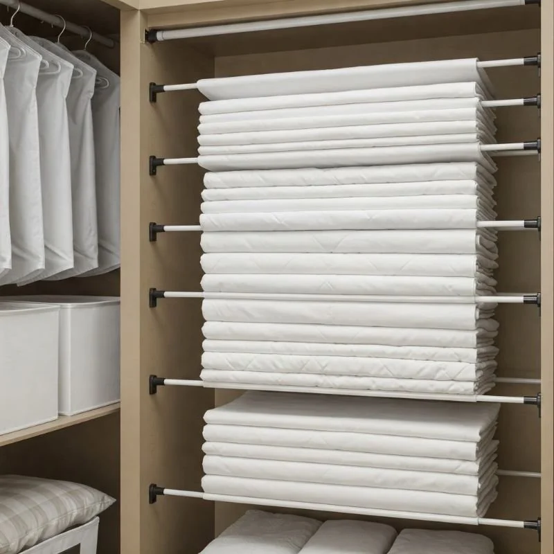 Maximize vertical closet space with fabric hanging shelves that instantly multiply your storage capacity without requiring any permanent installation. These canvas units hook over standard closet rods, creating multiple shelving tiers in otherwise unused vertical space – like adding extra floors to a building without construction permits! I particularly recommend versions with reinforced shelves that resist sagging when loaded with heavier winter flannel sets. The compartmentalized design naturally encourages organization by creating visual and physical boundaries for different types of linens. Have you considered the psychological benefit of seeing all your options at once rather than digging through stacks? For closets with sufficient depth, look for hanging systems with side pockets perfect for storing smaller items like pillowcases or sheet straps. This approach works wonderfully in rental properties where permanent shelving installation isn't an option, or in shared household spaces where everyone needs their own designated sheet storage area.