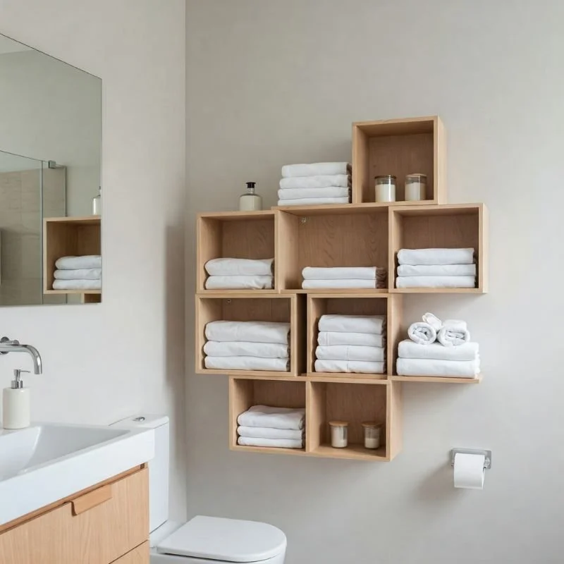 9. Wall-Mounted Cubbies for Bathroom Linen Storage