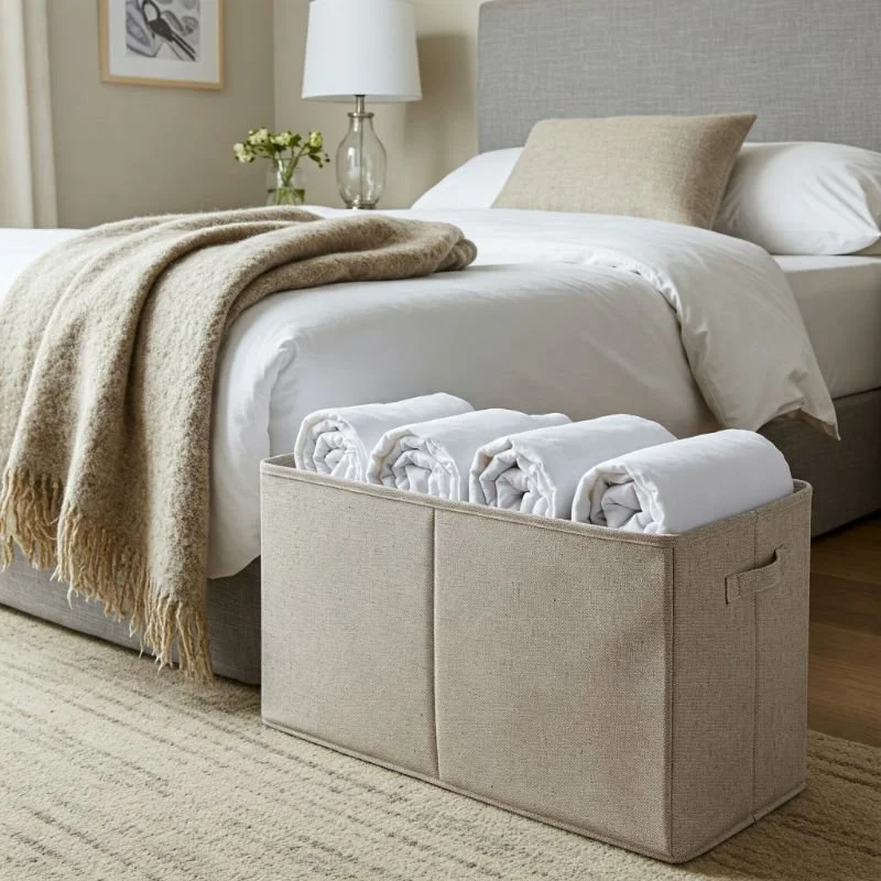 Transform that neglected under-bed space into prime sheet storage real estate with low-profile containers specifically designed to slide beneath your bed frame. The game-changer here? Internal dividers that create designated compartments for different sheet sets, preventing the inevitable jumble that occurs in standard bins. I particularly love the clear-top versions that allow you to see contents without pulling them out completely – like having a sheet catalog right under your mattress! For those with limited under-bed clearance, look for vacuum-compression bags designed specifically for under-bed storage. These combine space-saving compression with flat storage dimensions, perfect for seasonal sheet rotation. Pro tip: add silica gel packets to these containers to prevent any moisture issues, especially if you live in a humid climate. Your sheets stay fresh, organized, and literally within arm's reach of where you'll use them.
