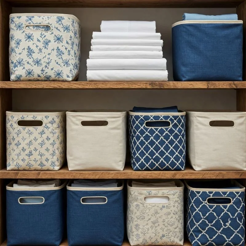 Embrace softness with structured fabric bins that protect your sheets while adding textural interest to open shelving. Unlike rigid containers, these cloth organizers conform slightly to their contents, maximizing space utilization while preventing creasing that comes with cramming sheets into inflexible boxes. Have you noticed how the perfect storage solution seems to speak the same language as what you're storing? Soft fabrics for soft linens just makes sense! I recommend selecting bins with reinforced sides and bottoms to maintain their shape even when not completely full. The organizational magic happens when you add clear, consistent labeling – try hanging tags, embroidered labels, or even Polaroid photos showing the contents. Color-code by room, sheet size, or season for intuitive access. These bins stack beautifully on closet shelves but also look intentional and decorative when left visible on bedroom shelving, turning necessary storage into part of your design scheme.