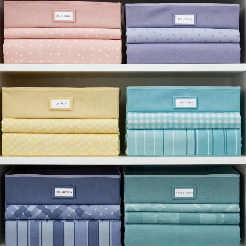Implement a visual management system that transcends any specific storage container by organizing sheets according to a consistent color scheme. This method works with whatever physical storage solution you choose, adding another layer of intuitive organization through visual cues. Arrange sheets by color families on shelves creating a rainbow effect, or group by room assignment with a specific color palette dedicated to each bedroom. Wouldn't it be wonderful to identify sheet destinations at a glance without reading labels? I've found this approach particularly valuable for households with multiple bed sizes, where quick visual identification prevents the frustration of grabbing queen sheets for a king bed. Enhance this system with colored ribbon markers tied to folded bundles, or purchase sets within designated color families for each room. When combined with appropriate physical storage from our other solutions, this color-management approach creates foolproof organization that even the most organization-resistant family members can maintain – making sheet changes simpler for everyone in the household.