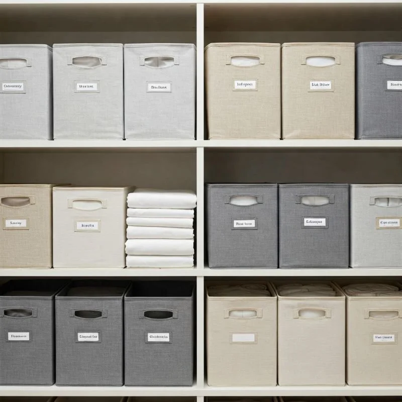 3. Fabric Storage Bins with Labeling Solutions