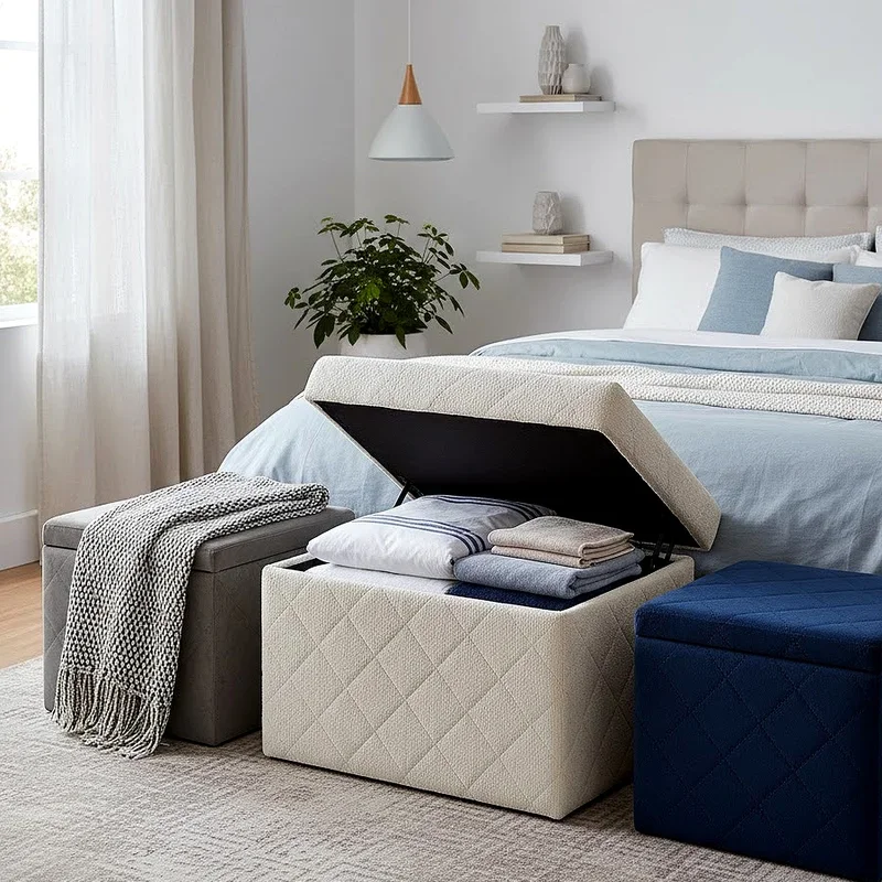 Ottoman storage benches serve double duty as both functional seating and clever bedding storage solutions. These versatile pieces typically feature a hinged lid that lifts to reveal a spacious interior perfect for storing extra blankets, throw pillows, or guest bedding. You can position an ottoman at the foot of your bed, creating a convenient spot to sit while dressing or removing shoes. Many designs come upholstered in beautiful fabrics that complement your bedroom decor, transforming practical storage into an attractive design element. The hidden storage keeps your bedroom looking tidy while ensuring bedding remains easily accessible when needed. Some ottomans even include internal dividers, helping you organize different types of linens more efficiently.