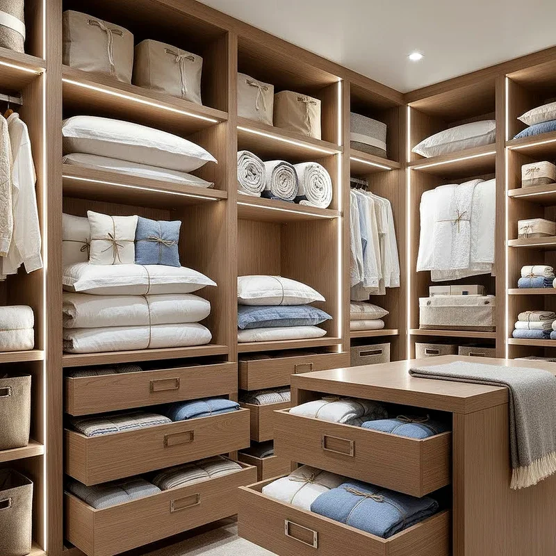 Built-in closet organizers transform chaotic linen closets into streamlined storage systems that maximize every square inch. These custom or semi-custom solutions typically include adjustable shelving, drawer units, and specialized compartments designed specifically for bedding. You can dedicate specific shelves to different sheet sets, assign drawers to pillowcases, and reserve upper shelves for seasonal items you access less frequently. Many systems include pull-out baskets or bins that make retrieving items from deep shelves much easier. Installing closet organizers helps you see exactly what bedding you own, preventing duplicate purchases and reducing clutter. The investment in proper closet organization pays dividends through years of efficient, stress-free bedding management that keeps everything neat and findable.