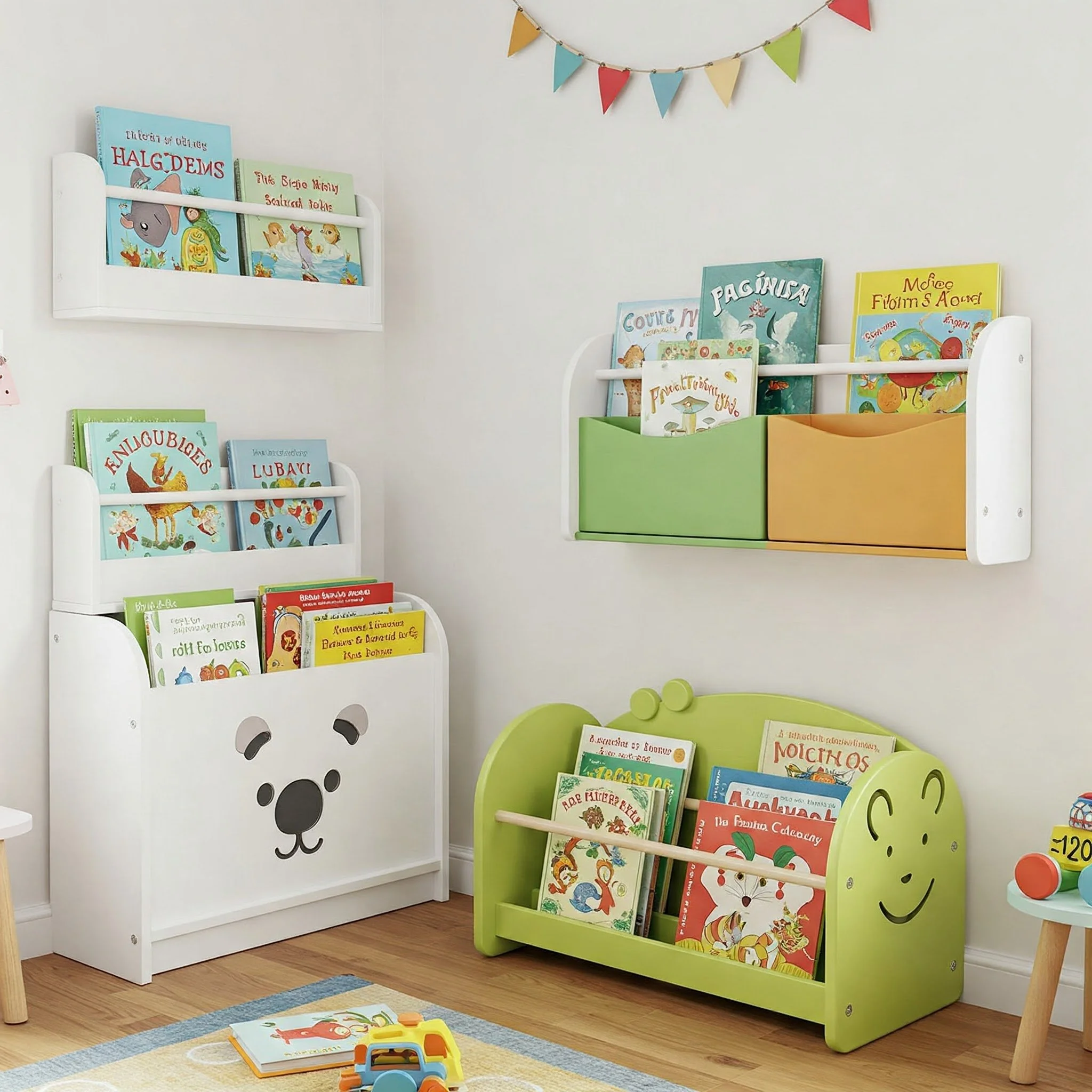 Kids’ books might be smaller in size but can multiply in a blink. Creating a kid-friendly storage system encourages reading habits and keeps clutter at bay. Opt for front-facing shelves or rain-gutter-style displays that let young readers see book covers instead of spines. This approach not only makes it easier for them to find their favorite stories but also sparks curiosity about new ones. Adding labeled baskets or fabric bins is another kid-friendly tactic—just toss in the books, and you’re done. Make sure the shelves are low enough for little arms to reach. That way, kids can grab or return books independently, fostering a sense of ownership and responsibility. With bright colors, playful designs, and maybe a beanbag chair nearby, you’ll have a mini library that’s as inviting as it is organized.