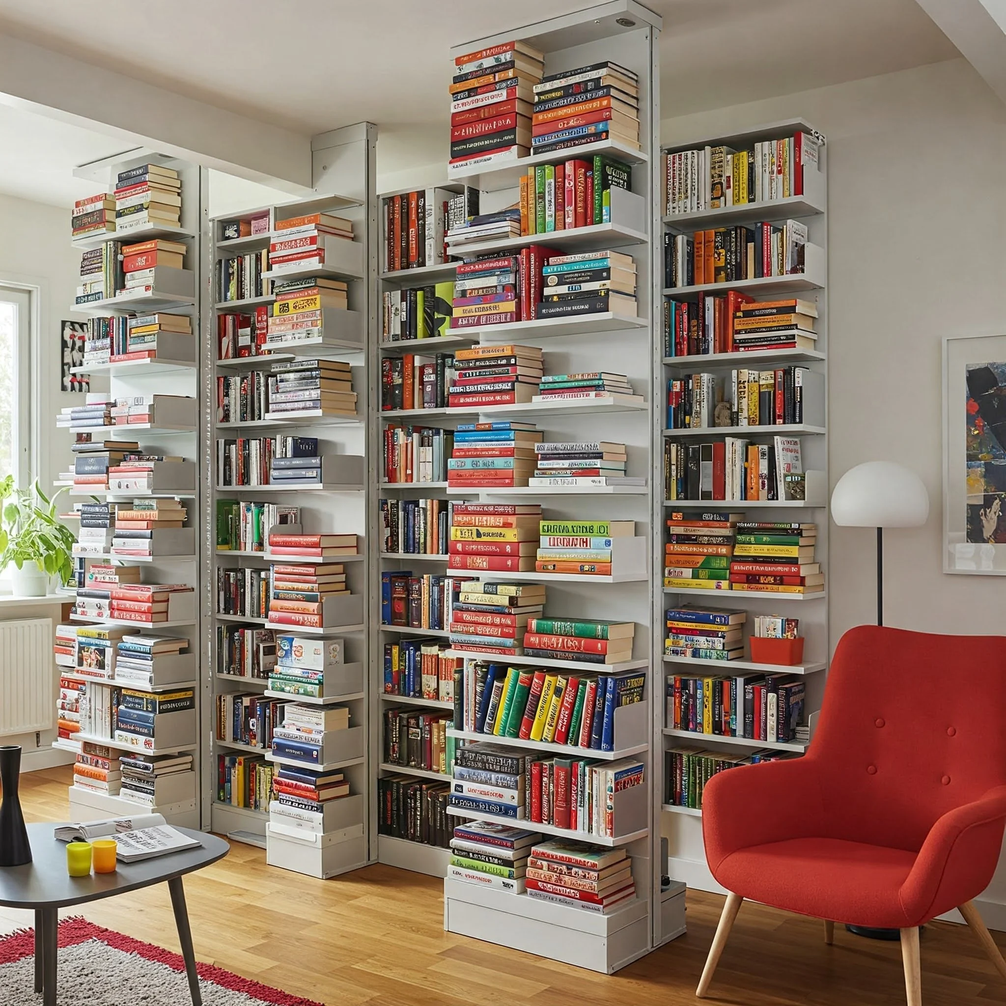 Vertical shelving units are tall, narrow, and perfect for those with limited floor real estate but plenty of upward potential. Think of them as towering columns filled with your favorite reads, standing guard in a corner or framing a doorway. Because they take up minimal floor space, you can fit multiple units side by side for an even more dramatic effect—like pillars of knowledge. Some designs even rotate 360 degrees, giving you easy access to all sides while adding a futuristic twist to your décor. Keep your books organized by subject or alphabetical order, using labeled stickers or small dividers if it suits your organizational style. The best part? Vertical shelves draw the eye upward, making your room feel taller and more spacious, while also safeguarding your literary treasures from accidental stepping or knocking.