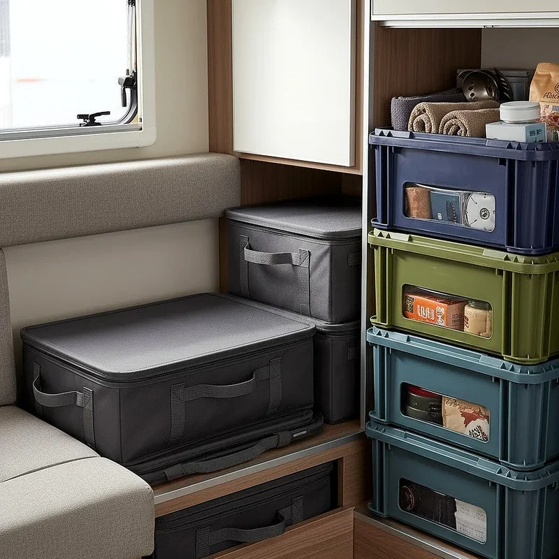 Collapsible containers adapt to changing needs throughout your journey perfectly. These products expand when full and collapse flat when empty, adjusting storage capacity dynamically. Stackable designs maximize vertical cabinet space while maintaining accessibility. Use them for food storage, craft supplies, or children's toys. Containers come in various materials including silicone, plastic, and fabric options. Their nesting ability means minimal space consumption when unused. This flexibility proves valuable during longer trips with changing storage requirements. Transparent containers enable content identification without opening. Quality collapsible storage transforms caravans into adaptable living spaces. Consider container sizes matching your specific cabinet dimensions for optimal organization and space utilization.