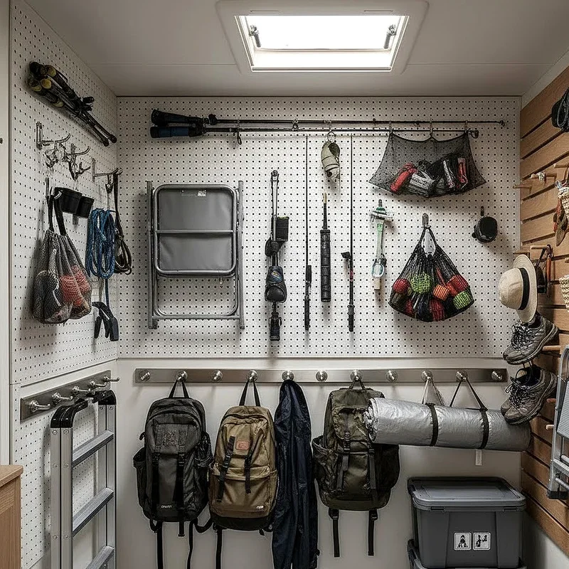 Wall-mounted hooks and pegboards transform vertical surfaces into functional, accessible storage areas. Pegboards allow customizable arrangements of hooks, shelves, and baskets suiting specific needs. Install pegboards in kitchens for pots and utensils or workspaces for tools. Individual hooks work well near entrances for keys, hats, coats, or bags. This system's flexibility allows rearranging as needs change through seasons or trips. Choose lightweight materials and secure installation methods ensuring stability during travel. Some caravanners paint pegboards in bright colors adding personality while solving storage challenges. This solution works excellently for daily-use items since visibility and accessibility save time. Think of walls as untapped real estate becoming functional storage space efficiently.