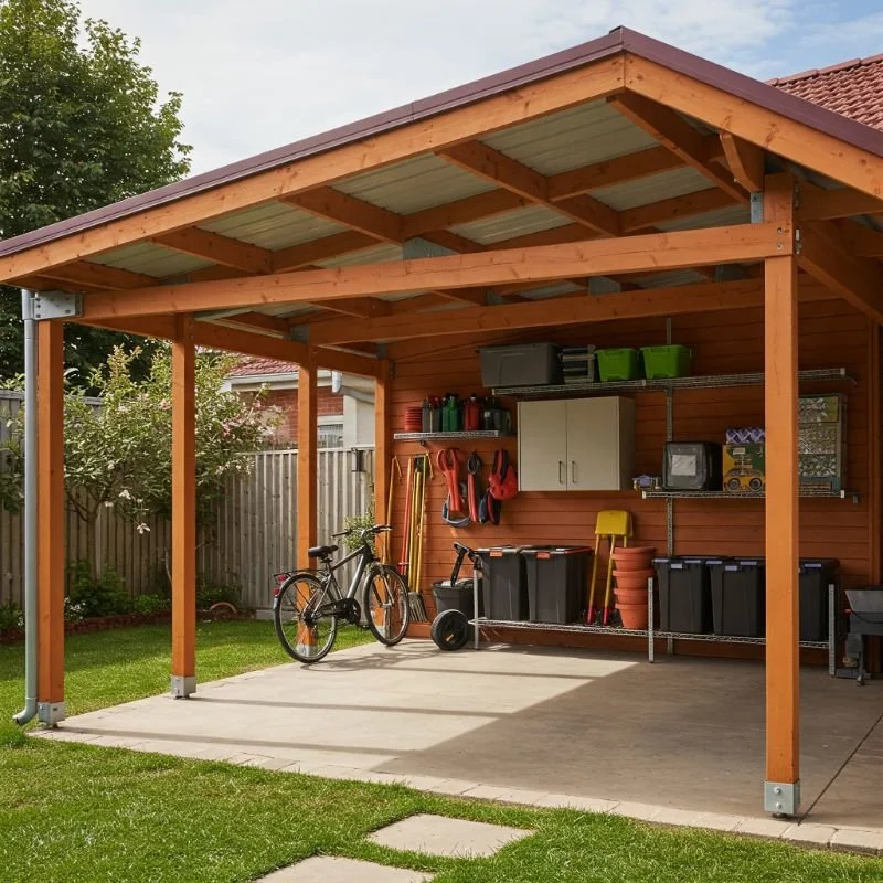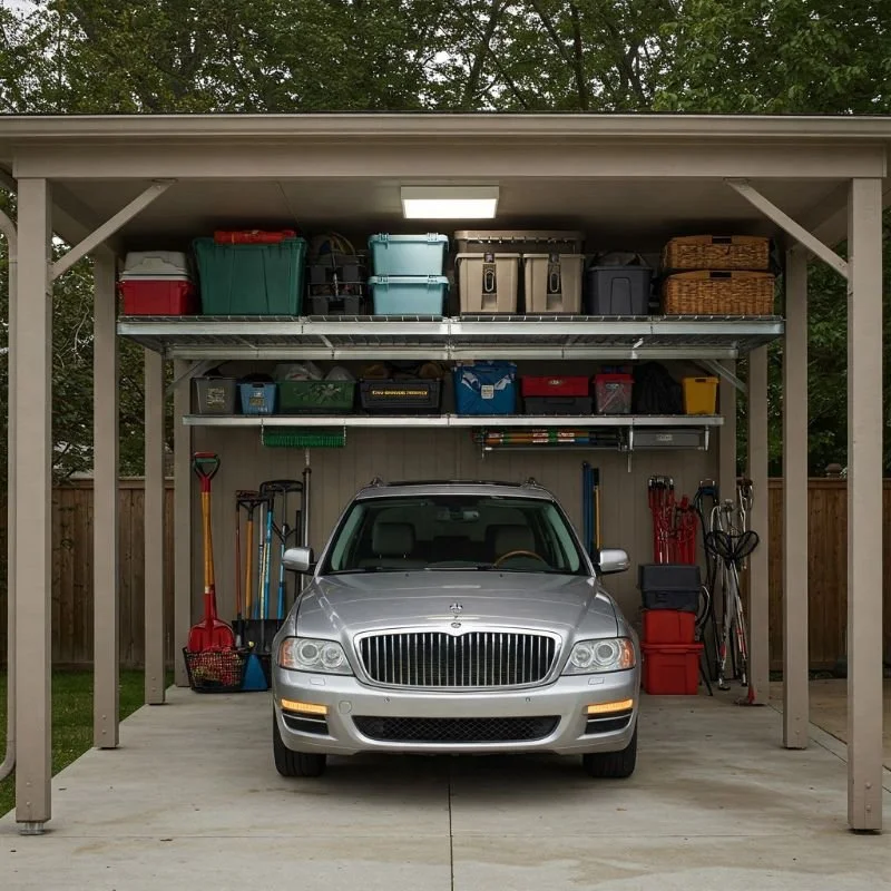 Absolutely. Most of these strategies—like overhead racks and corner shelves—are adaptable for open or partially enclosed carports.How do I protect items from weather in an open carport?