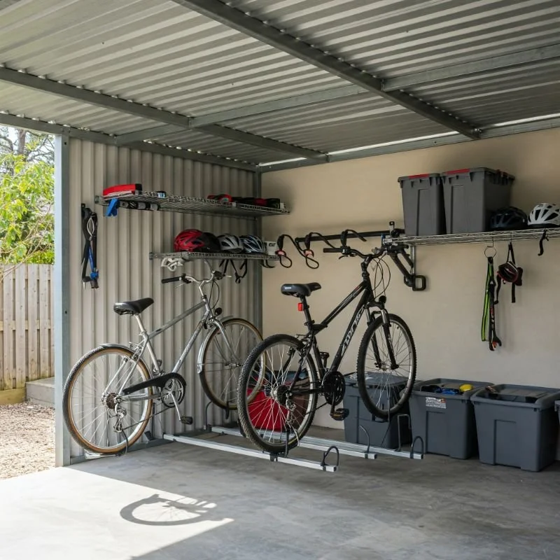 If your family loves cycling, you know how quickly bikes can dominate a carport floor. Bike racks and hangars solve that problem in one elegant swoop. By mounting racks on the wall or investing in a ceiling hoist system, you can keep those two-wheelers off the ground, reducing trip hazards and freeing up room for other essentials. Think of it as creating a “bike wall,” turning your rides into functional decor when they’re not in use. You can even assign each family member their own designated rack, preventing morning scrambles for the right bike. Some hangars are designed to rotate or pivot, allowing you to store multiple bikes in tight spaces. The result? A neat lineup of cycles that’s easy on the eyes and even easier on your daily routine.