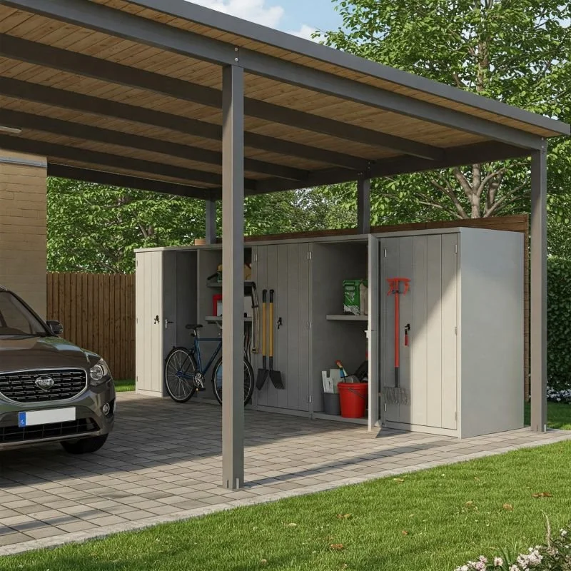 Lockers aren’t just for high school hallways anymore; they’re a practical carport storage solution for families constantly on the move. Imagine each family member having their own secure compartment for jackets, boots, or sports equipment, so there’s no frantic search when you’re running late for soccer practice or a weekend getaway. Lockers can also store seasonal items—like snow gear or beach supplies—safely out of the house but still conveniently close. Many modern locker designs are weather-resistant, and some even come with ventilation to keep musty odors at bay. It’s like having personal mini-closets right in your carport, and you can customize them with shelves, hooks, or small drawers as needed. The result is a more organized household, where everything from backpacks to beach towels has its place, and chaos stays firmly at the curb.