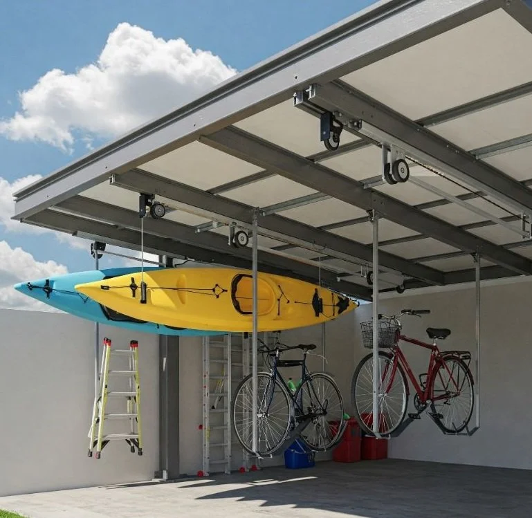 Ceiling hoists are like a magical elevator for your bulky gear. Picture pulling a rope to lift a kayak, canoe, or even a bulky rooftop cargo box high above your car—safely out of the way yet still accessible when you’re craving an outdoor adventure. These hoists typically come with a pulley system that makes lifting and lowering heavy items much easier than you’d expect. Installing one might require a bit of handyman know-how, but the payoff is huge. You instantly reclaim floor space and reduce the risk of accidentally knocking into large equipment. Plus, it’s oddly satisfying to watch your bulky gear ascend and descend like it’s on stage. If your carport has sufficient overhead clearance, a ceiling hoist can be a game-changer for storing seasonal and oversized items.