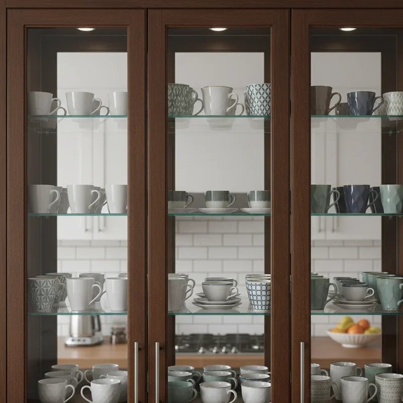 Glass-front cabinets strike the perfect balance between protection and display, turning your coffee cups into curated collections behind elegant glass doors. These cabinets protect cups from dust and grease while maintaining visual accessibility that makes selection easy. Arrange cups by color, pattern, or size to create an aesthetically pleasing display that changes your kitchen's entire ambiance. Adding interior lighting transforms ordinary mugs into illuminated art pieces that glow warmly. Choose between clear glass for full visibility or frosted panels for a softer, more mysterious look. The transparency keeps your kitchen feeling open and airy while providing enclosed storage that satisfies both minimalists and collectors alike.