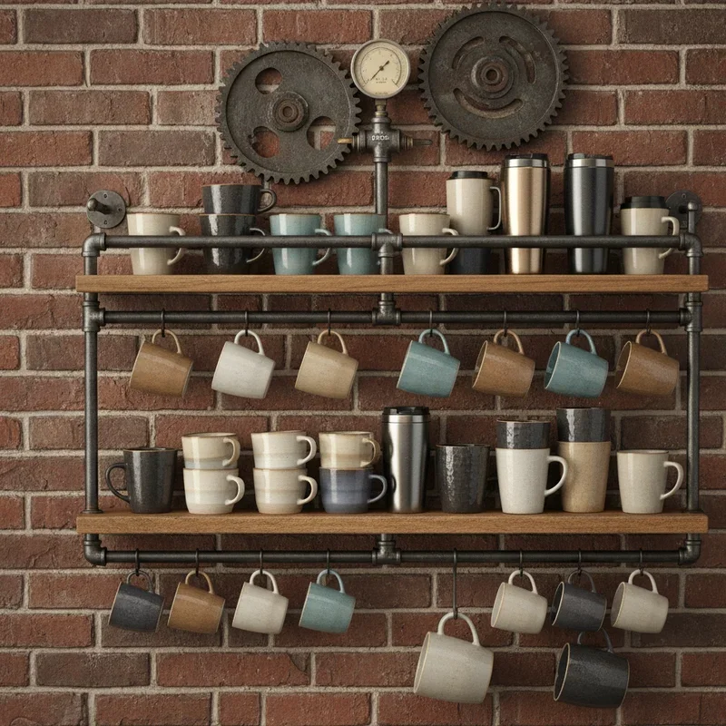Embrace the industrial trend with pipe racks that bring urban edge to your coffee cup storage. These DIY-friendly systems use plumbing pipes and fittings to create custom configurations that fit your specific space and needs. The raw metal aesthetic pairs beautifully with exposed brick, concrete countertops, or modern farmhouse designs. Build a simple rail with hooks or create elaborate multi-level displays that become conversation pieces. The durability of metal pipes means they'll support even your heaviest ceramic mugs without worry. Customize the finish with spray paint, or leave pipes raw for authentic industrial appeal. This storage solution proves that functional elements can become striking design features when creativity meets practicality.