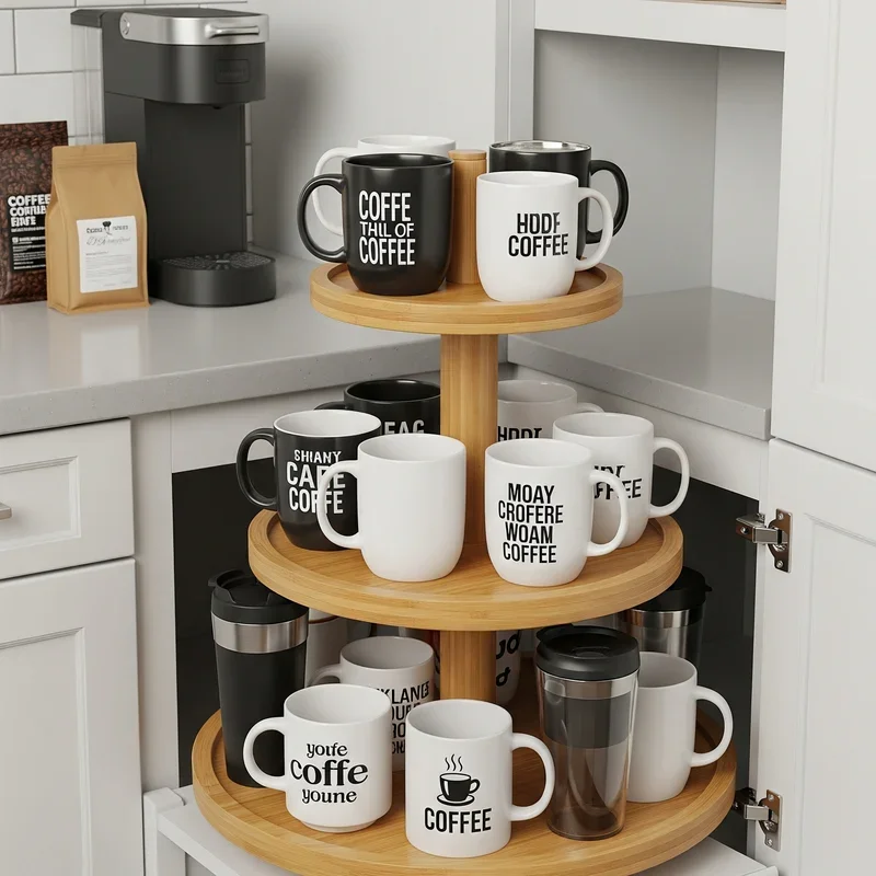 Spin your way to better organization with lazy Susans that make every mug accessible with a simple turn! These rotating platforms work magic in corner cabinets or deep shelves where mugs typically hide. Choose two-tiered versions to double your storage without sacrificing accessibility. The 360-degree rotation eliminates the need to move front mugs to reach those in back. Place frequently used mugs on the outer edge and special occasion pieces toward the center. Non-slip surfaces prevent sliding during rotation, keeping your mugs safe. Clear acrylic versions maintain visibility, while bamboo adds natural warmth to your cabinets. This solution particularly benefits households with multiple coffee drinkers who need quick morning access. The smooth spinning action even makes putting away clean mugs more enjoyable. Your cabinet corners just became the most functional spots in your kitchen!
