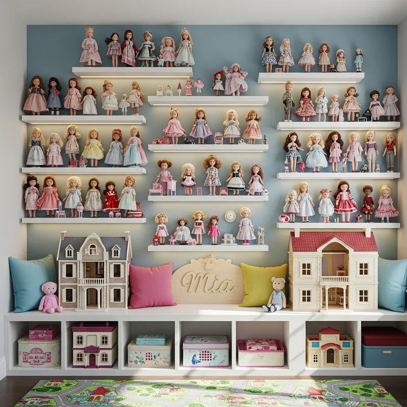 A1: Glass-front cabinets or wall-mounted display shelves protect valuable dolls while showcasing them beautifully.