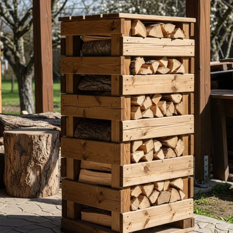 Elevate firewood storage to art form with decorative towers that showcase your splitting skills while maintaining practical function. Create cylindrical or square towers using careful stacking techniques emphasizing pattern and precision. These 4-6 foot towers hold quarter-cord quantities while becoming garden sculptures. Start with level bases using stone or concrete pads ensuring stability. Alternate wood directions creating herringbone or basket-weave patterns adding visual interest. The compact footprint suits small yards while vertical orientation maximizes storage density. Top with decorative caps like copper roofs or living sedum gardens combining function with beauty. Position prominently where the artistic aspect enhances landscape design. Time investment increases considerably but results justify effort for visible locations. Include integrated kindling storage using smaller compartments within designs. These showpiece storage solutions prove firewood can enhance rather than detract from property aesthetics.