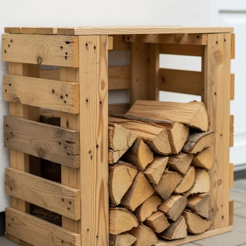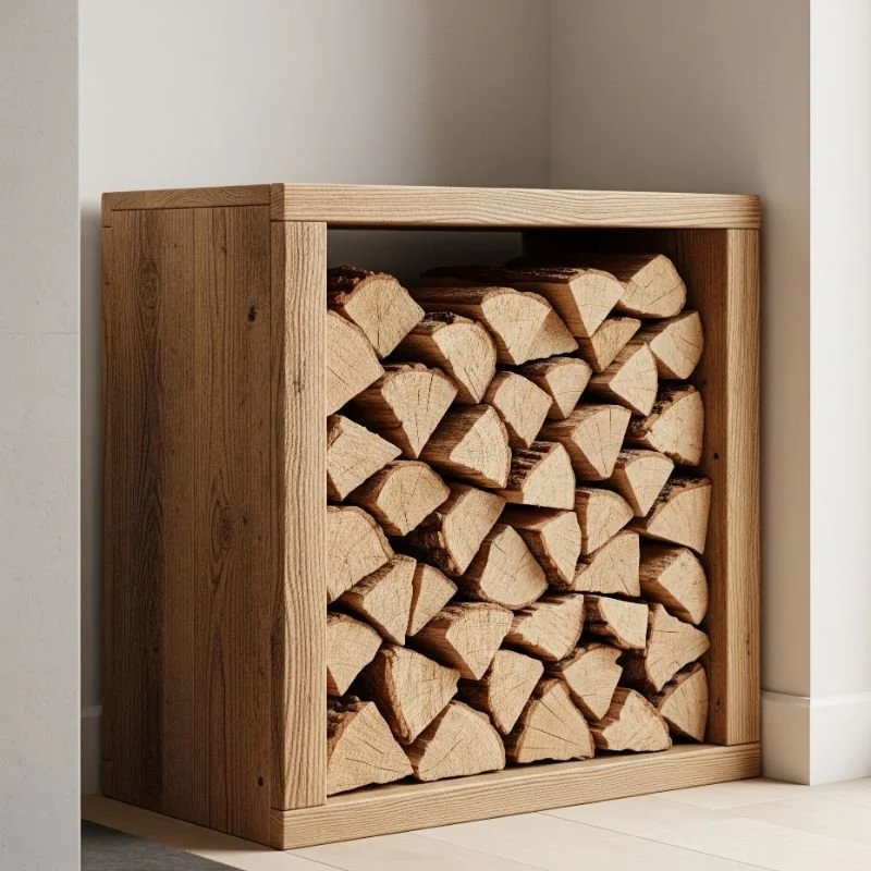 Keep a beautiful supply of ready-to-burn logs inside with purpose-built or repurposed containers that complement your decor. Options range from rustic wooden crates ($30-50) to elegant metal designs ($100-300) matching any interior style. Size boxes to hold 2-3 days' supply, preventing excessive indoor storage that attracts pests or creates mess. Include bottom ventilation slots preventing moisture accumulation while raised bases protect floors. Position near fireplaces or stoves but maintain safe distances from heat sources. The contained design prevents bark and debris scatter while organizing logs by size. Add wheels for easy cleaning access. Consider built-in kindling compartments for complete fire-starting stations. This convenience eliminates multiple outdoor trips while maintaining neat appearances. Choose designs with handles or cutouts for easy transport when refilling. The indoor storage becomes functional furniture enhancing room ambiance.