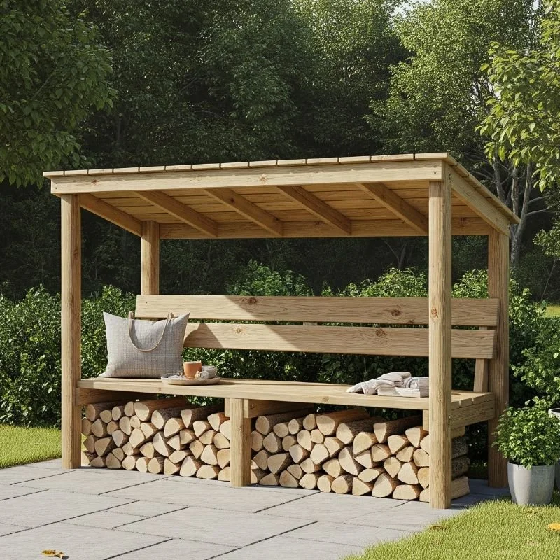 Combine seating with storage in dual-purpose benches that hide logs while providing outdoor furniture. Build or buy benches with hinged seats concealing storage compartments underneath. Construction costs range from $100 DIY to $400 for commercial versions. The enclosed design protects wood from rain while bench tops offer rest spots during yard work. Size compartments for easy access without unstacking entire supplies. Include ventilation holes preventing mustiness while maintaining weather resistance. Position strategically along pathways or near outdoor living spaces for both function and convenience. The furniture appearance suits any landscape style from rustic to contemporary. Use weather-resistant materials and hardware ensuring longevity. Interior dividers organize different wood types or separate kindling. This solution maximizes small yard efficiency while eliminating purely utilitarian structures. The hidden storage maintains clean aesthetics year-round.
