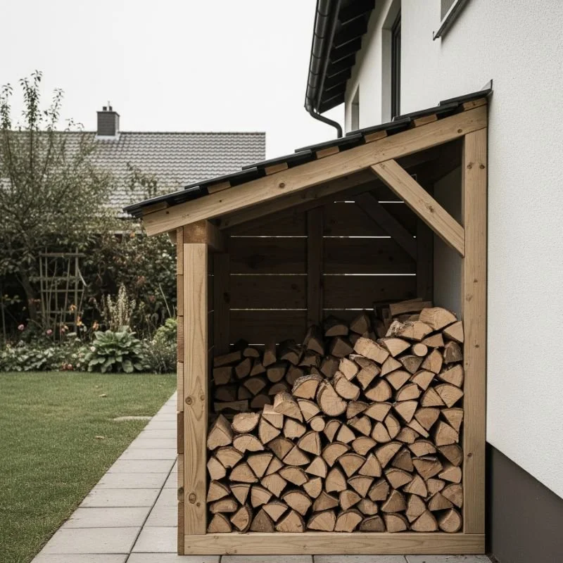Maximize convenience with a lean-to structure that puts firewood steps from your door while utilizing existing walls. This space-saving design attaches to your home's exterior, garage, or outbuilding, cutting construction costs nearly in half. Build with a slanted roof that directs water away from both wood and foundation. Ensure at least 4 inches between wood and house siding to prevent moisture damage and pest highways. Materials cost $200-600 for a typical 4x8 foot lean-to. The proximity reduces those cold treks for firewood while the house wall provides wind protection. Include mesh screens to deter rodents while maintaining airflow. Position on the north side to minimize sun exposure that can dry wood too quickly, causing splits. This practical solution suits small yards where freestanding structures aren't feasible.