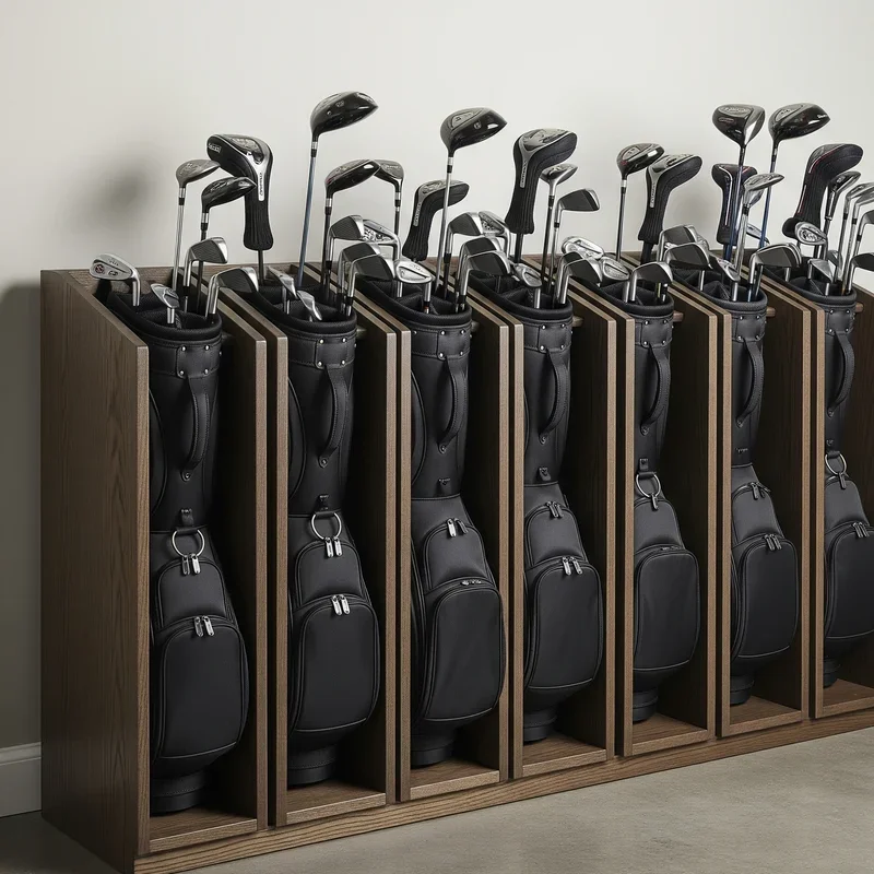 Maximize floor space with vertical stands that hold clubs upright in minimal square footage while maintaining easy accessibility. These tower-style organizers separate each club individually, preventing contact that causes wear and preserving grip condition. The vertical orientation makes club selection quick and easy, displaying options clearly without digging through bags. Weighted bases prevent tipping even when fully loaded with clubs, ensuring stability and safety. Some designs rotate for 360-degree access, perfect for corners or tight spaces where side access is limited. Include models with adjustable heights accommodating everything from junior clubs to extra-long drivers. The open design promotes air circulation around grips and shafts, preventing moisture damage and extending equipment life. Position stands away from high-traffic areas to prevent accidental bumps.
