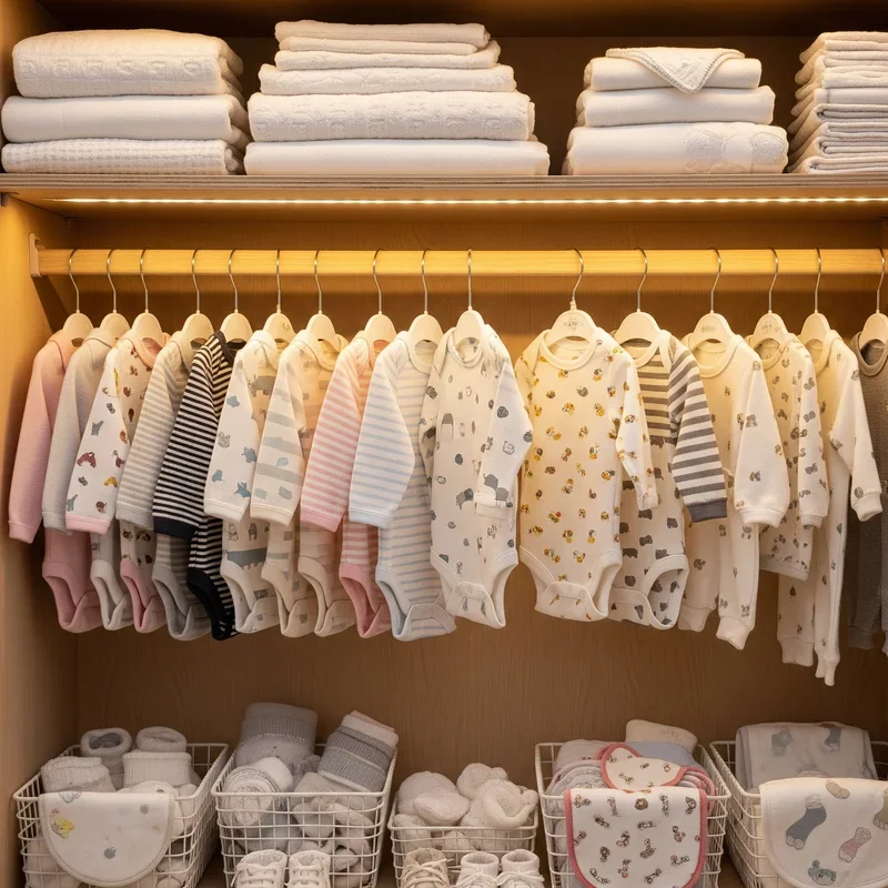 For long-term storage or clothes waiting for the next baby, vacuum storage bags are absolutely brilliant. They reduce bulk by up to 75% and protect clothes from dust, moisture, and those mysterious closet smells. Just remember to label bags clearly with sizes and seasons!