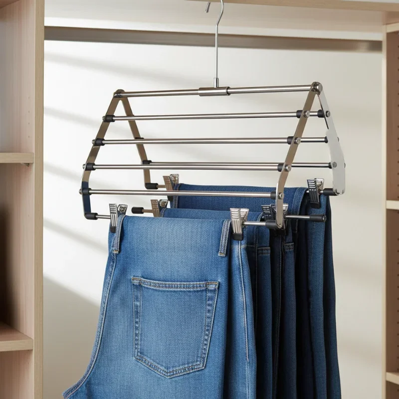 A2: Hang jeans by belt loops or use multi-tier hangers to avoid folding creases.