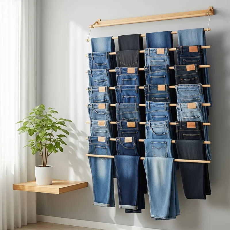 Maximize small spaces with 15 clever jeans storage ideas. From rolling to hanging, organize your denim collection efficiently today!