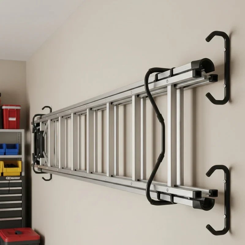 Maximize floor space by storing ladders vertically against walls using specialized brackets that cradle them securely! These J-shaped or U-shaped brackets hold ladder rails firmly while preventing sideways tipping that could cause accidents. Install brackets at two heights, with the lower one supporting weight and the upper one preventing the ladder from falling forward. The vertical position minimizes the storage footprint, perfect for narrow workshops where every inch counts. Choose brackets with rubber coating to protect ladder rails from scratches and provide grip that prevents slipping. This storage method works brilliantly for stepladders and shorter extension ladders that don't reach excessive heights. Add a bungee cord or strap across the top bracket for extra security during workshop vibrations from power tools.
