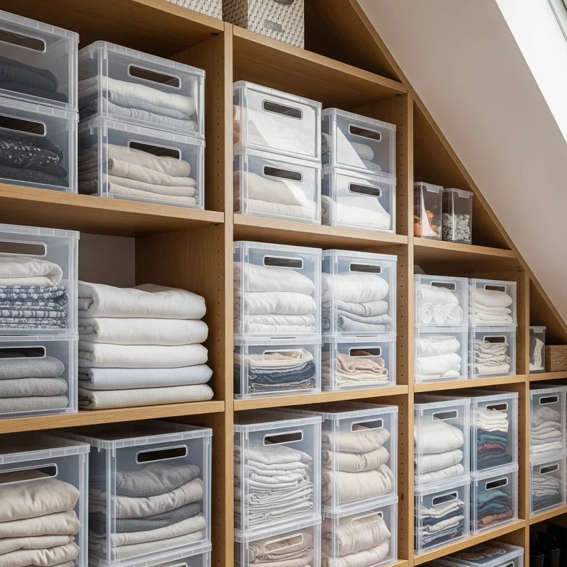 See everything at a glance with clear storage boxes that stack like building blocks of organization! These transparent containers eliminate the guessing game of opaque boxes while maximizing vertical space through smart stacking. Choose uniform sizes for neat stacking or varied dimensions that nest when empty, saving space during seasonal transitions. The visibility factor encourages you to actually use stored items rather than forgetting they exist. Label boxes clearly on multiple sides for easy identification from any angle in your loft. Invest in quality boxes with secure lids that won't pop off when stacked high or moved frequently. Use smaller boxes for heavy items to prevent lifting injuries and larger ones for bulky but lightweight items like holiday decorations. Create inventory lists taped inside lids for detailed contents when even clear visibility isn't enough. Your loft becomes a visible library of possessions!