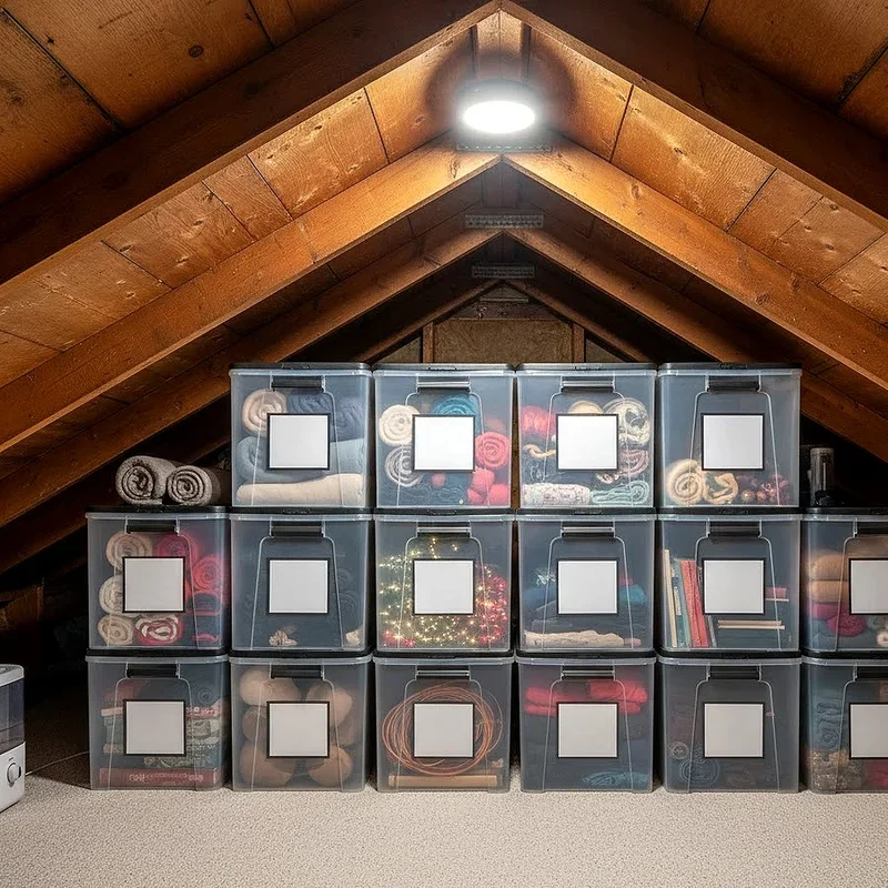 Investing in a uniform set of stackable modular containers revolutionizes attic organization. When all your containers are the same size and shape, they stack neatly like building blocks, maximizing vertical space without wasting gaps. Choose containers with interlocking lids that secure each level, preventing toppling when you remove a box from the stack. Clear containers let you see contents without opening every box, saving time and frustration. The modular approach means you can create storage columns that fit perfectly into your attic's various nooks and corners. This uniformity creates a cleaner, more organized appearance compared to random mismatched boxes. Consider containers with handles for easier carrying up and down attic stairs, and choose sizes that one person can comfortably lift when full.
