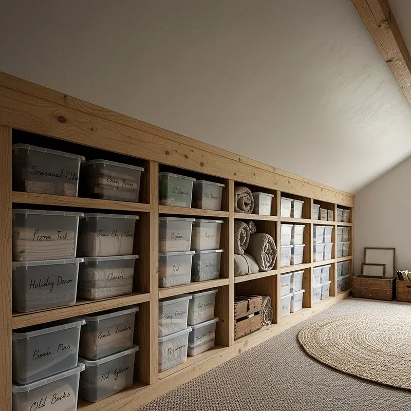 Transform your cramped attic into organized storage with these 15 clever low-ceiling solutions that maximize every inch of available space.