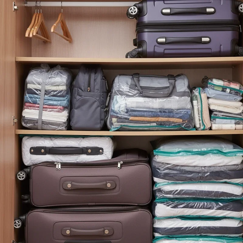 When storage space runs desperately short, vacuum-sealed bags become your secret weapon for compressing bulky soft-sided luggage dramatically. These specialized bags remove air, shrinking duffel bags and soft suitcases to a fraction of their normal size. You can then stack these compressed packages efficiently in closets, under beds, or on high shelves. This method works best for luggage you won't need for several months, as frequently opening and resealing bags gets tedious. Purchase quality vacuum bags with secure seals to prevent air from gradually seeping back inside over time. Just remember that hard-shell suitcases can't be vacuum-sealed, so this solution applies only to flexible materials. The space savings often prove remarkable, potentially freeing up enough room to eliminate the need for additional storage furniture.