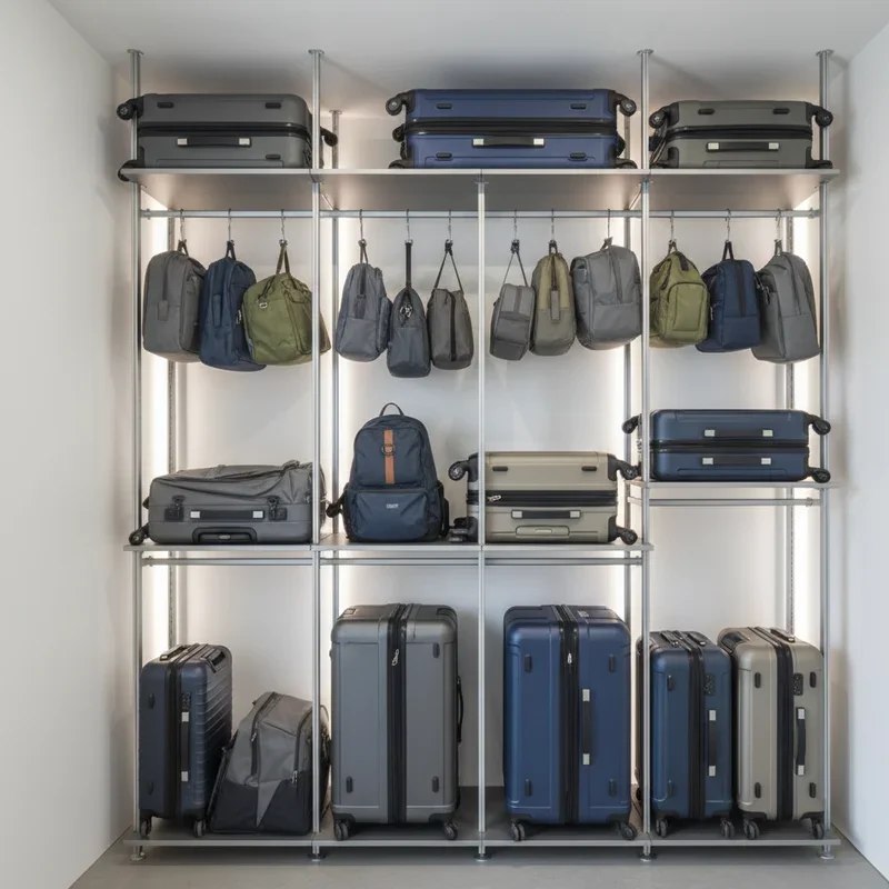 Mobile storage racks provide flexibility that fixed systems simply cannot match, allowing you to rearrange your space effortlessly. These wheeled units work beautifully in garages, basements, or large closets where you might need to access items behind them. Choose racks with sturdy construction and locking wheels to prevent unwanted movement once you position them perfectly. You can roll them aside during parties or gatherings, then push them back into place afterward. Many rolling racks feature adjustable shelves, letting you customize spacing based on your specific luggage dimensions. This solution proves especially practical for people who frequently reorganize their homes or rent properties where permanent installations aren't allowed. The portability means you can take these racks with you when you move to a new place.