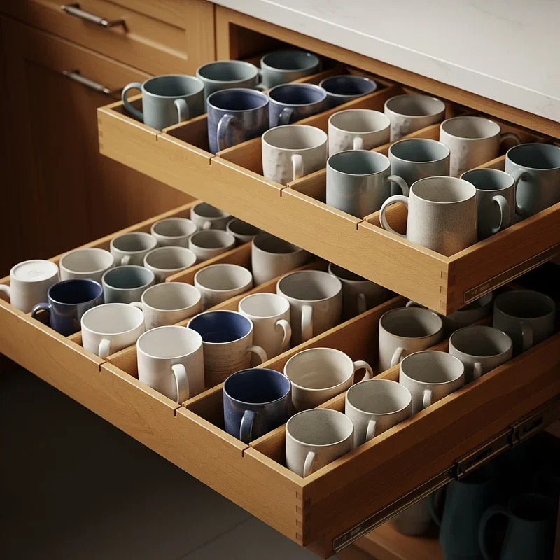 A4: Use individual compartments or soft liners between stacked mugs for protection.