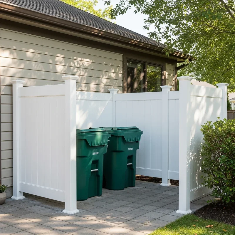 Vinyl fencing has come a long way from those boring white panels your grandparents had. Today's options include wood grain textures, multiple colors, and decorative tops that rival any traditional material. The beauty of vinyl lies in its absolutely zero maintenance requirement; no painting, staining, or sealing needed, ever. A three-panel enclosure runs about $400 but will look exactly the same in ten years as it does on day one. Installation is remarkably simple with pre-made panels and posts that practically snap together like giant LEGOs. Choose a style that matches your existing fencing for seamless integration, or go bold with a contrasting design that makes a statement. This is the set-it-and-forget-it solution busy homeowners dream about.