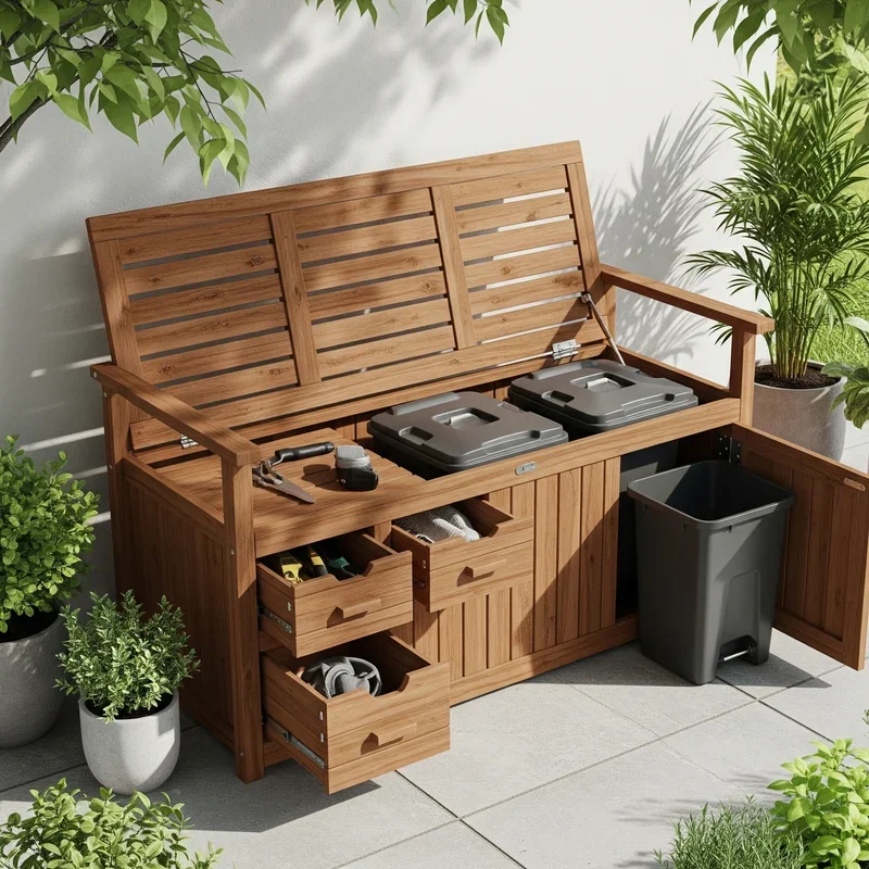 Sometimes you need a solution that's completely enclosed and lockable, especially if wildlife or curious pets are concerns. A wheelie bin storage box provides total protection with a top-loading lid that makes trash day effortless. Build one from marine-grade plywood and exterior paint for about $300, or splurge on a pre-made resin version for convenience. The beauty of this design is its versatility; the top can double as a potting bench or serving station during parties. Add gas struts to the lid for smooth opening, and include a latch for security. Some designs even incorporate planters on top, turning your storage box into a raised garden bed. It's maximum functionality disguised as outdoor furniture.