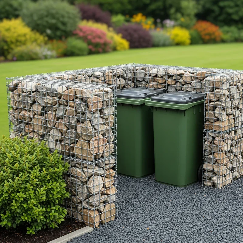 Gabion walls bring industrial chic to residential spaces, using wire cages filled with rocks to create incredibly sturdy and visually striking barriers. This ancient technique gets a modern update when used for garbage storage, creating a structure that looks like contemporary art. Fill the cages with river rock, crushed granite, or even recycled glass for about $250 total investment. The weight and stability mean these walls will outlast your house, never needing paint or repairs. Water drains through naturally, preventing rot and rust issues that plague other materials. You can build them in any configuration, creating curves or angles that complement your landscape design. It's the perfect solution for anyone who wants their garbage storage to make a bold architectural statement.