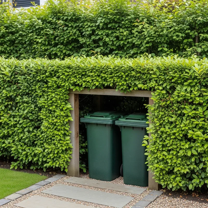 Sometimes the best storage solution is the one that completely disappears, and that's exactly what a hedge-hidden nook delivers. Plant fast-growing evergreen shrubs like arborvitae or privet in a U-shape, leaving space for your bins in the middle. Within two growing seasons, you'll have a living wall that provides year-round coverage and actually improves with age. The initial investment of about $200 for plants pays dividends in property value and aesthetic appeal. Regular trimming keeps things neat, but honestly, slightly overgrown hedges have their own cottage garden charm. This solution also provides habitat for birds and beneficial insects, making your garbage storage area an unexpected contributor to local biodiversity. Nature really does provide the best camouflage.