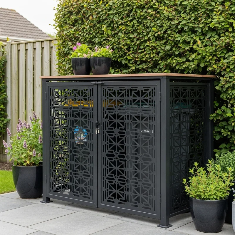 Metal panels aren't just for industrial spaces anymore; they're making a huge splash in residential design, and your garbage storage can ride that wave. Laser-cut aluminum or steel panels featuring geometric patterns, botanical designs, or abstract art turn a utilitarian need into a focal point. While custom panels can get pricey, you can find beautiful pre-made options for around $200 per panel. Powder coating ensures they'll resist rust and maintain their gorgeous finish for years. The play of light and shadow through the cutouts creates visual interest throughout the day. Mount them on a simple frame, and suddenly your garbage area looks like it belongs in a contemporary sculpture garden.