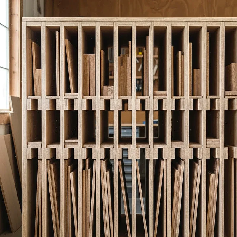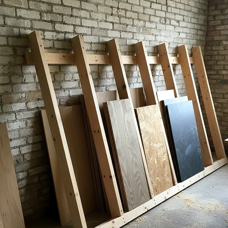 Slot-style vertical dividers transform a basic storage frame into an organized filing system for plywood sheets, keeping different materials separated and easily identifiable. This method involves creating multiple vertical slots within a frame structure, similar to how vinyl records stand in a crate. Each slot accommodates one or several sheets depending on your organizational preferences and material inventory size. The dividers prevent sheets from leaning against each other at awkward angles that could cause warping over time. You can label each slot according to plywood type, thickness, or project designation, creating a visual inventory system that saves searching time. Construction requires accurate measurements and consistent spacing to ensure slots remain functional and sheets slide in smoothly. This organizational approach particularly benefits workshops that maintain diverse plywood inventories requiring frequent access and easy differentiation between material grades.