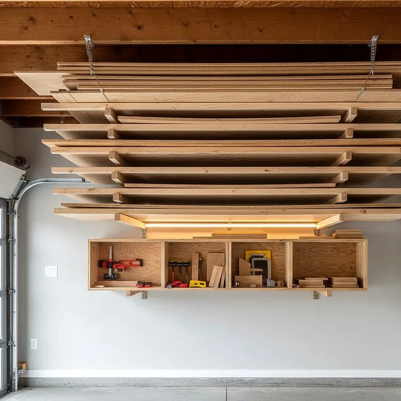 Utilizing ceiling space for plywood storage frees up valuable floor and wall areas while keeping materials safely out of your primary work zone. This overhead system requires careful installation into ceiling joists using lag bolts and steel brackets capable of supporting substantial weight. You'll need to consider ceiling height carefully since accessing stored materials requires a stable ladder or rolling platform. The method works brilliantly for storing full sheets you don't access frequently, such as specialty woods or future project materials. Installing pulleys or a simple hoist mechanism can make retrieval safer and more efficient for heavier plywood grades. Remember to account for proper clearance so stored sheets don't interfere with lighting fixtures or other overhead installations. This approach particularly benefits smaller workshops where every square foot of accessible space counts toward productive work area.