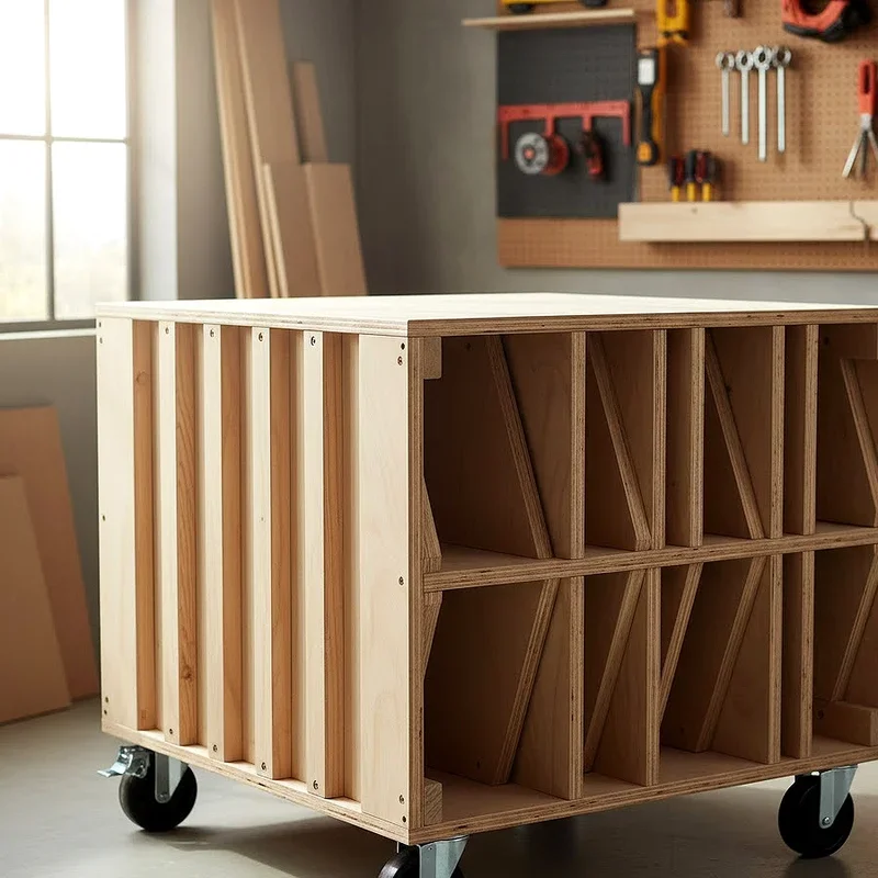 A rolling plywood cart brings unprecedented flexibility to your workshop by allowing you to move materials exactly where you need them during projects. This mobile solution features heavy-duty casters that glide smoothly across concrete or wooden floors, with locking mechanisms ensuring stability during loading and unloading. The frame typically consists of welded steel or sturdy wood construction with angled supports that prevent sheets from sliding out. You can position dividers to create separate compartments for various plywood sizes, from quarter-inch panels to three-quarter-inch sheets. The portability factor becomes invaluable when you're working on large projects that require frequent material access or when you need to reconfigure your workspace layout. Many woodworkers discover that mobility reduces physical strain and improves workflow efficiency significantly. Your cart becomes a traveling workstation that follows you around the shop rather than forcing you to make repeated trips.