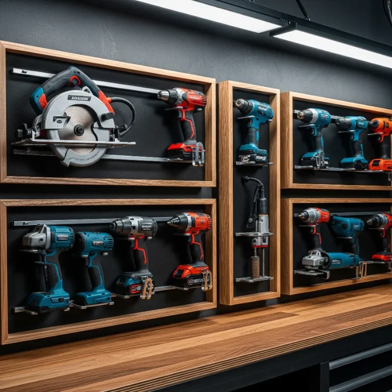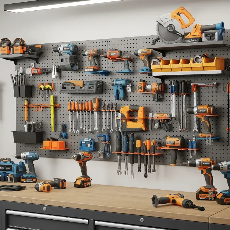 Who says pegboards are old school? These versatile storage champions remain one of the most flexible solutions for power tool organization. You can customize your pegboard layout endlessly, adding hooks, shelves, and specialized holders as your tool collection grows. The beauty lies in its adaptability: need to reorganize for a new tool? Simply move the hooks around! I've found that painting pegboard sections in different colors helps create visual zones for various tool categories. Installing LED strip lights behind translucent pegboard creates an eye-catching backlit effect while improving visibility. The key is mounting your pegboard with spacers behind it, giving hooks room to fit properly. Pro tip: use outline markers or vinyl cutouts to create tool shadows, making it instantly obvious when something's missing.