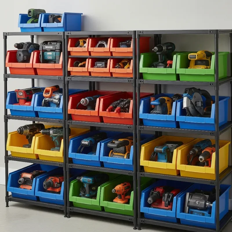 Think of stackable bins as building blocks for your storage system, offering endless configuration possibilities that adapt to your changing needs. These versatile containers let you categorize tools and accessories while maximizing vertical space. Clear bins provide instant visibility, while labeled opaque ones hide clutter beautifully. I organize bins by project type: one for electrical work, another for woodworking, each containing relevant power tools and accessories. The modular nature means you can grab an entire bin for remote projects. Look for bins with interlocking lids that create stable stacks. Heavy-duty versions can support significant weight when stacked. Front-opening designs allow access without unstacking. Mix sizes to accommodate different tools, from compact drills to larger sanders. This system grows organically with your tool collection.