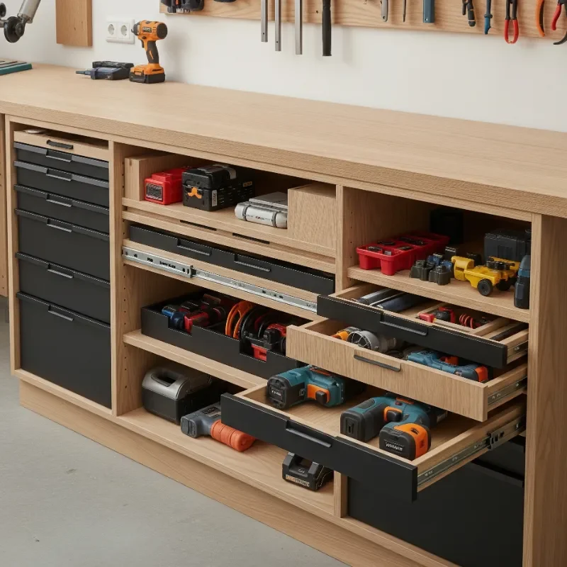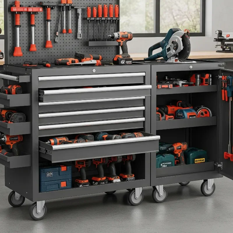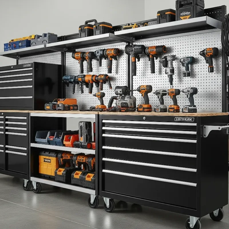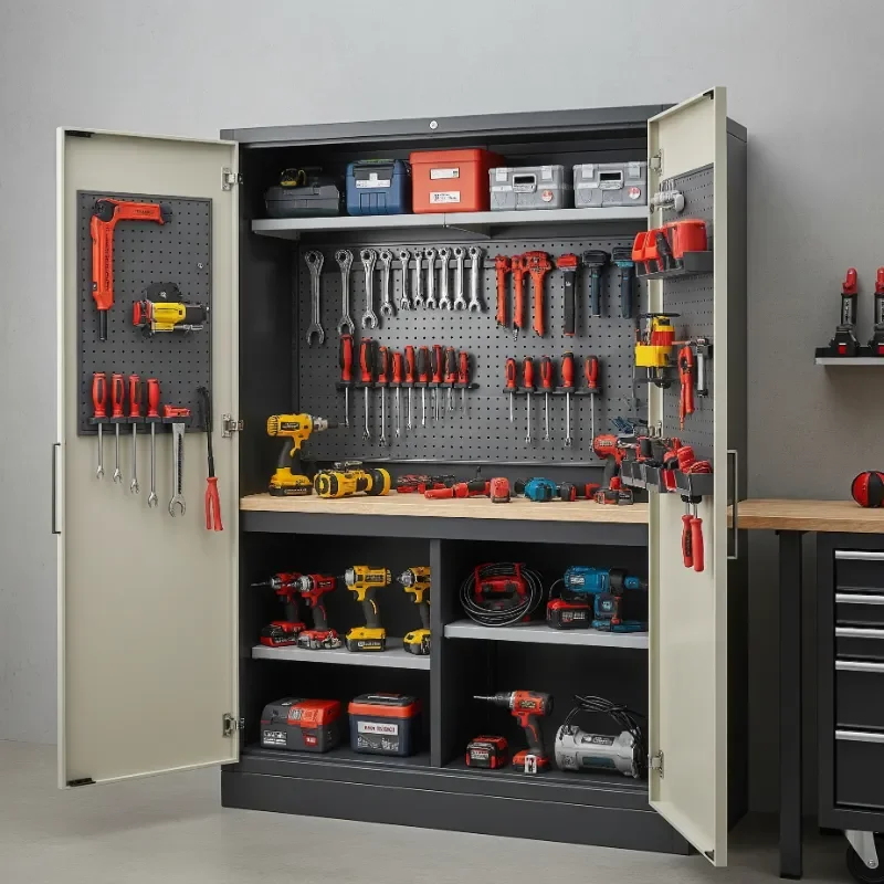 Transform that big metal cabinet from a black hole of disorder into an efficiency powerhouse with smart internal organization. Adjustable shelving lets you customize spacing for tools of various heights. Add door-mounted organizers for bits, blades, and batteries. Drawer dividers keep smaller items sorted and accessible. I've installed LED strips inside cabinets for better visibility, activated by door opening. Lazy Susans on shelves make reaching items at the back effortless. Consider pull-out trays that bring tools to you rather than forcing you to dig. Label everything clearly, using a label maker for professional results. Magnetic sheets on interior walls hold metal accessories. Anti-slip drawer liners prevent tool movement. Lock mechanisms protect valuable tools while keeping dangerous ones away from curious hands. A well-organized cabinet becomes command central for your workshop.